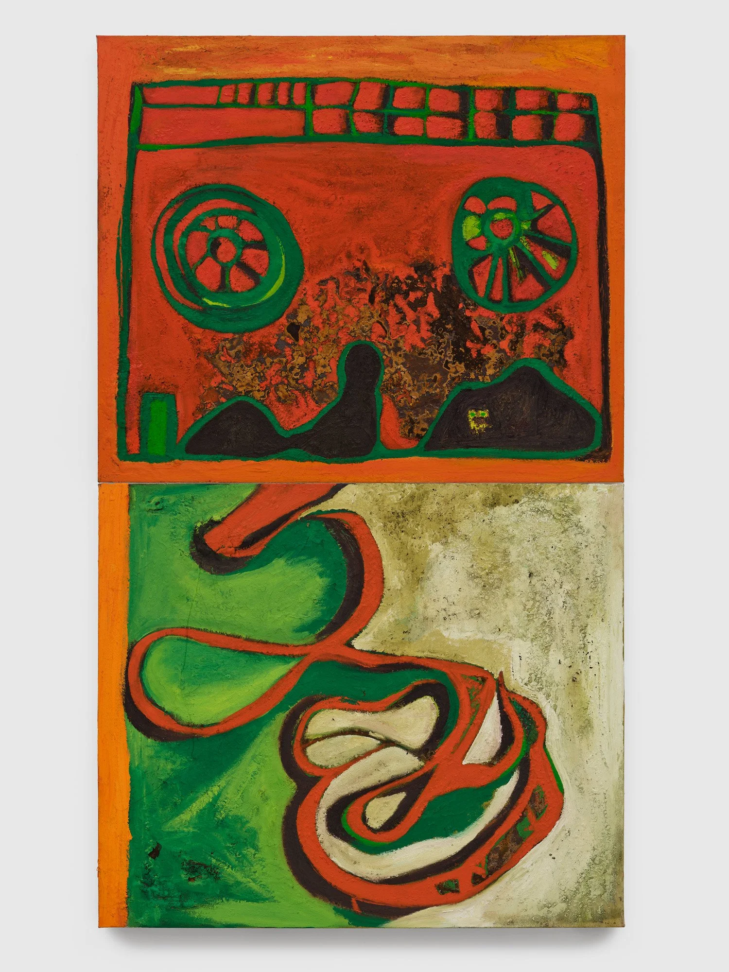 Ghost voice 4, 2025 Ghost voice 3, 2025 Oil and iron on canvas Diptych, each: 80 x 96 cm